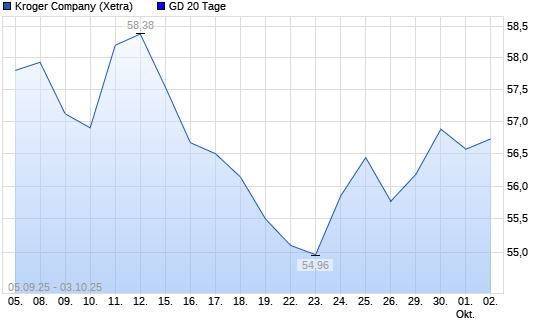 Mit dem Rücksetzer auf 56,43 EUR hat die Kroger Company-Aktie am 02.10.2025 die 20-Tage-Linie nach unten gekreuzt.