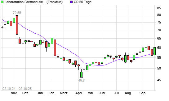 Mit dem Anstieg auf 59,85 EUR hat die Laboratorios Farmaceut.-Aktie am 01.10.2025 die 50-Tage-Linie nach oben gekreuzt.