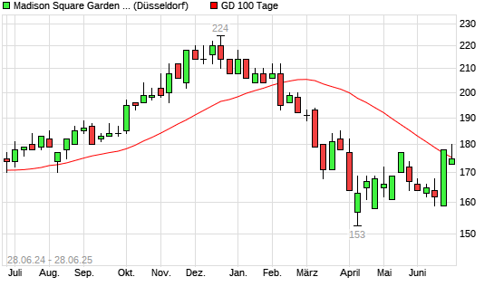 Mit dem Anstieg auf 175,00 EUR hat die Madison Square Garden Sports A-Aktie am 27.06.2025 die 100-Tage-Linie nach oben gekreuzt.