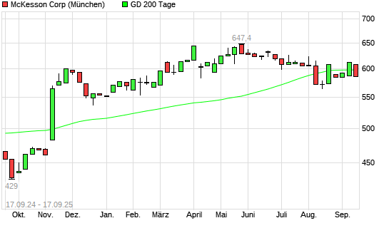 Mit dem Rücksetzer auf 595,00 EUR hat die McKesson-Aktie am 16.09.2025 die 200-Tage-Linie nach unten gekreuzt.