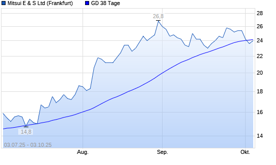 Mit dem Rücksetzer auf 23,60 EUR hat die Mitsui E&S Holdings-Aktie am 02.10.2025 die 38-Tage-Linie nach unten gekreuzt.