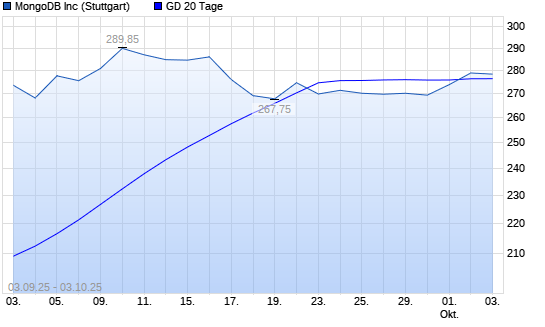 Mit dem Anstieg auf 277,50 EUR hat die MongoDB-Aktie am 02.10.2025 die 20-Tage-Linie nach oben gekreuzt.Die MongoDB-Aktie befindet sich seit dem 27.08.2025 im langfristigen Aufwärtstrend und ...weiterlesen