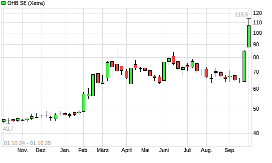 Mit dem Anstieg auf 105,50 EUR hat die OHB-Aktie (ISIN DE0005936124) am 30.09.2025 ein neues All-Time-High erreicht und damit den Kurs vom 29.09.2025 eingestellt.