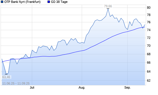 Mit dem Rücksetzer auf 74,46 EUR hat die OTP Bank-Aktie am 10.09.2025 die 38-Tage-Linie nach unten gekreuzt.