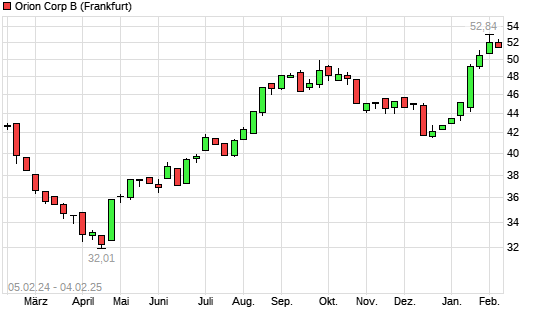 Mit dem Anstieg auf 52,34 EUR hat die Orion Corporation-Aktie (ISIN FI0009014377) am 03.02.2025 ein neues 12-Monats-Hoch erreicht und damit den Kurs vom 31.01.2025 eingestellt.