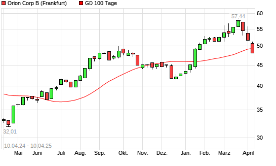 Mit dem Anstieg auf 51,00 EUR hat die Orion Corporation-Aktie am 09.04.2025 die 100-Tage-Linie nach oben gekreuzt.