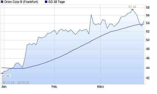 Mit dem Rücksetzer auf 53,32 EUR hat die Orion Corporation-Aktie am 27.03.2025 die 38-Tage-Linie nach unten gekreuzt.