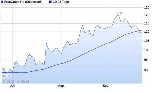Mit dem Rücksetzer auf 109,00 EUR hat die PulteGroup-Aktie am 23.09.2025 die 38-Tage-Linie nach unten gekreuzt.