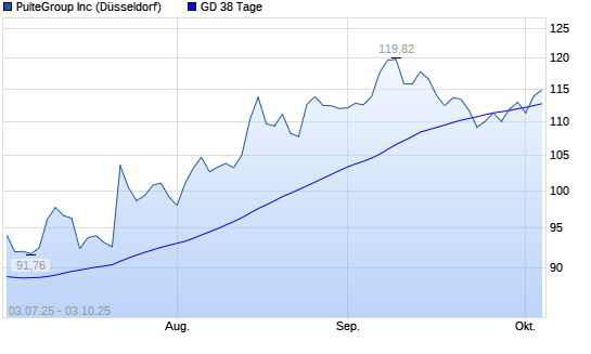 Mit dem Anstieg auf 114,08 EUR hat die PulteGroup-Aktie am 02.10.2025 die 38-Tage-Linie nach oben gekreuzt.Die PulteGroup-Aktie befindet sich seit dem 04.08.2025 im langfristigen Aufwärtstrend ...weiterlesen