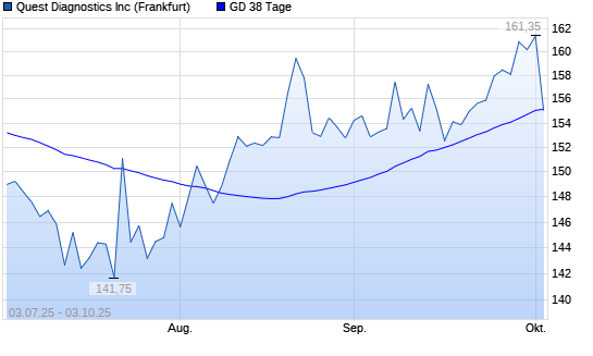 Mit dem Rücksetzer auf 155,00 EUR hat die Quest Diagnostics-Aktie am 02.10.2025 die 38-Tage-Linie nach unten gekreuzt.