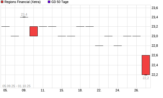 Mit dem Rücksetzer auf 22,40 EUR hat die Regions Financial-Aktie am 30.09.2025 die 50-Tage-Linie nach unten gekreuzt.Die Regions Financial-Aktie befindet sich seit dem 13.08.2025 im langfristigen ...weiterlesen