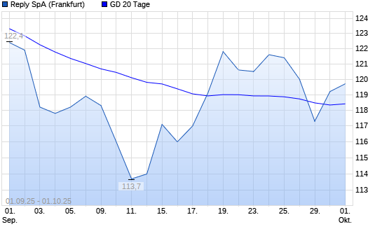 Mit dem Anstieg auf 119,20 EUR hat die Reply-Aktie am 30.09.2025 die 20-Tage-Linie nach oben gekreuzt.