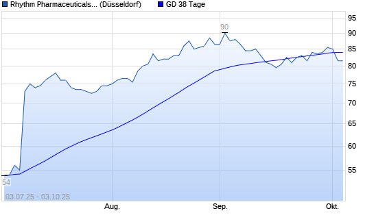 Mit dem Rücksetzer auf 82,50 EUR hat die Rhythm Pharmaceuticals-Aktie am 02.10.2025 die 38-Tage-Linie nach unten gekreuzt.