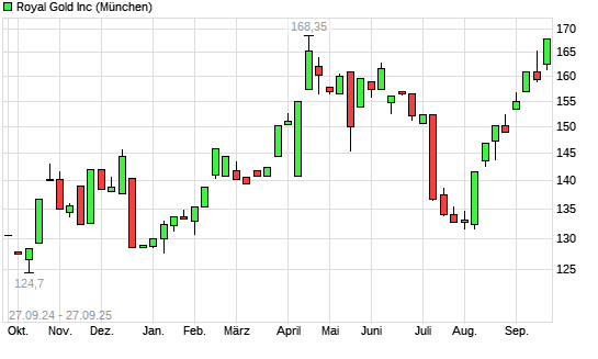Mit dem Anstieg auf 167,90 EUR hat die Royal Gold-Aktie (ISIN US7802871084) am 26.09.2025 ein neues All-Time-High erreicht und damit den Kurs vom 15.09.2025 eingestellt.