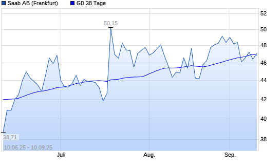Mit dem Rücksetzer auf 46,40 EUR hat die Saab AB-Aktie am 09.09.2025 die 38-Tage-Linie nach unten gekreuzt.