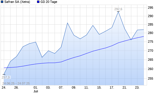 Mit dem Anstieg auf 279,50 EUR hat die Safran-Aktie am 23.07.2025 die 20-Tage-Linie nach oben gekreuzt.