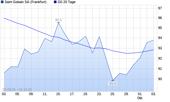Mit dem Anstieg auf 93,54 EUR hat die Saint Gobain-Aktie am 02.10.2025 die 20-Tage-Linie nach oben gekreuzt.