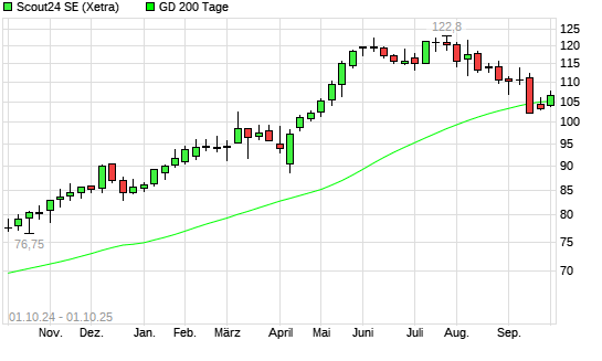 Mit dem Anstieg auf 106,30 EUR hat die Scout24-Aktie am 30.09.2025 die 200-Tage-Linie nach oben gekreuzt.