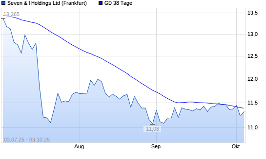 Mit dem Rücksetzer auf 11,23 EUR hat die Seven & Holdings-Aktie am 02.10.2025 die 38-Tage-Linie nach unten gekreuzt.