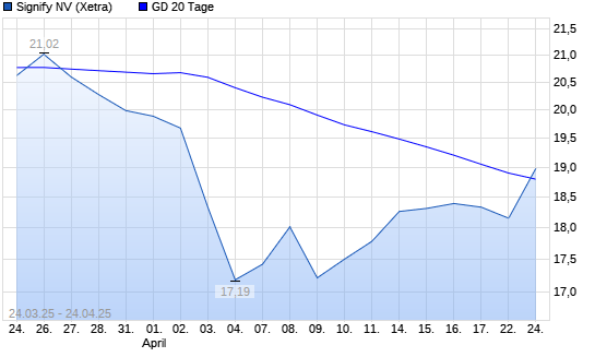 Mit dem Anstieg auf 19,08 EUR hat die Signify-Aktie am 23.04.2025 die 20-Tage-Linie nach oben gekreuzt.