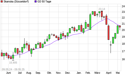 Mit dem Anstieg auf 20,63 EUR hat die Skanska-Aktie am 08.05.2025 die 50-Tage-Linie nach oben gekreuzt.Die Skanska-Aktie befindet sich seit dem 28.04.2025 im langfristigen Aufwärtstrend und ...weiterlesen