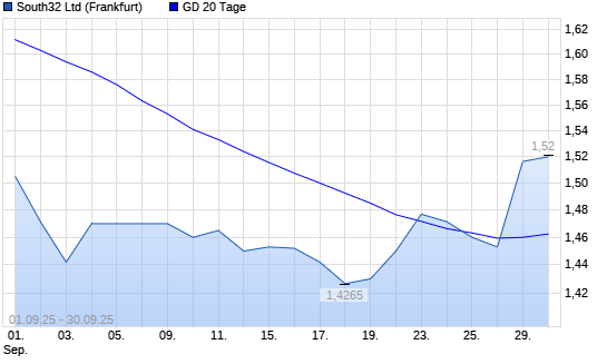 Mit dem Anstieg auf 1,52 EUR hat die South32-Aktie am 29.09.2025 die 20-Tage-Linie nach oben gekreuzt.