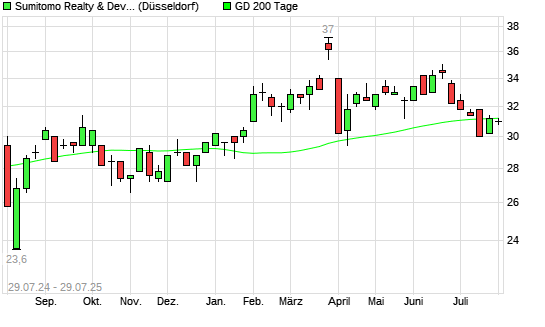Mit dem Rücksetzer auf 31,20 EUR hat die Sumitomo Realty & Development-Aktie am 28.07.2025 die 200-Tage-Linie nach unten gekreuzt.