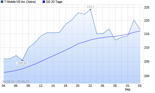 Mit dem Anstieg auf 219,95 EUR hat die T-Mobile US-Aktie am 02.09.2025 die 20-Tage-Linie nach oben gekreuzt.