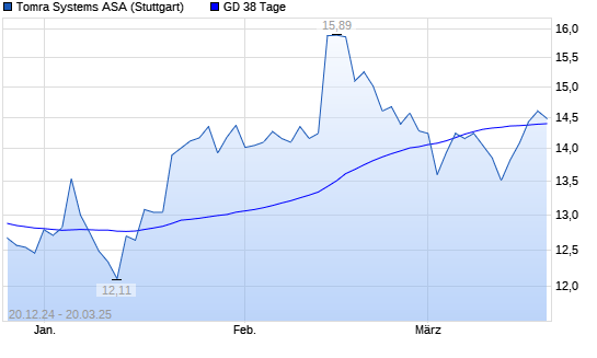 Mit dem Anstieg auf 14,86 EUR hat die Tomra Systems-Aktie am 19.03.2025 die 38-Tage-Linie nach oben gekreuzt.