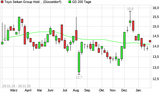 Mit dem Anstieg auf 14,40 EUR hat die Toyo Seikan Kaisha-Aktie am 27.01.2025 die 200-Tage-Linie nach oben gekreuzt.