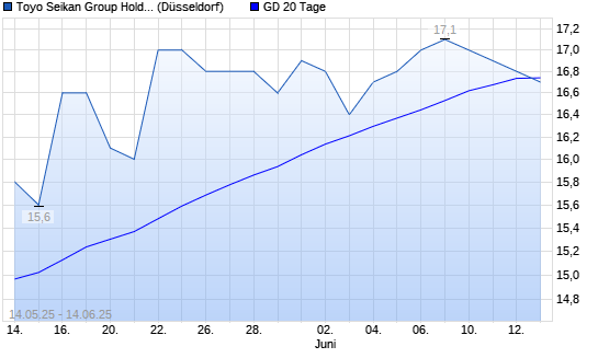 Mit dem Rücksetzer auf 16,80 EUR hat die Toyo Seikan Kaisha-Aktie am 13.06.2025 die 20-Tage-Linie nach unten gekreuzt.
