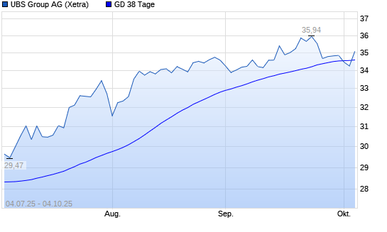 Mit dem Anstieg auf 34,64 EUR hat die UBS Group-Aktie am 03.10.2025 die 38-Tage-Linie nach oben gekreuzt.