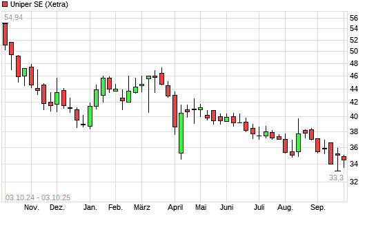 Mit dem Rücksetzer auf 33,80 EUR hat die Uniper-Aktie (ISIN DE000UNSE026) am 02.10.2025 ein neues All-Time-Low erreicht und damit den Kurs vom 01.10.2025 eingestellt.