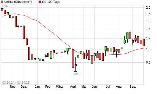Mit dem Anstieg auf 1,16 EUR hat die Unitika-Aktie am 02.10.2025 die 100-Tage-Linie nach oben gekreuzt.
