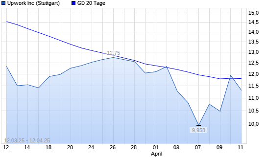 Mit dem Rücksetzer auf 10,99 EUR hat die Upwork-Aktie am 11.04.2025 die 20-Tage-Linie nach unten gekreuzt.