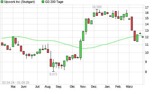 Mit dem Rücksetzer auf 12,20 EUR hat die Upwork-Aktie am 31.03.2025 die 200-Tage-Linie nach unten gekreuzt.