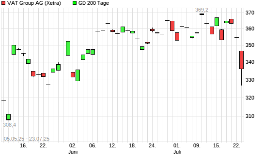 Mit dem Rücksetzer auf 354,70 EUR hat die VAT GROUP AG-Aktie am 22.07.2025 die 200-Tage-Linie nach unten gekreuzt.