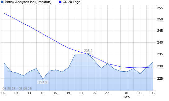Mit dem Anstieg auf 229,40 EUR hat die Verisk Analytics-Aktie am 04.09.2025 die 20-Tage-Linie nach oben gekreuzt.