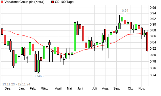 Mit dem Anstieg auf 0,89 EUR hat die Vodafone Group-Aktie am 11.11.2024 die 100-Tage-Linie nach oben gekreuzt.