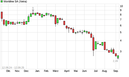 Mit dem Rücksetzer auf 2,57 EUR hat die Worldline-Aktie (ISIN FR0011981968) am 11.09.2025 ein neues All-Time-Low erreicht und damit den Kurs vom 08.09.2025 eingestellt.
