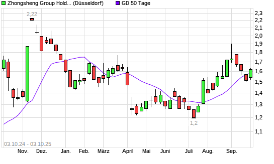 Mit dem Anstieg auf 1,65 EUR hat die ZHONGSHENG GRP Holding REGS-Aktie am 02.10.2025 die 50-Tage-Linie nach oben gekreuzt.