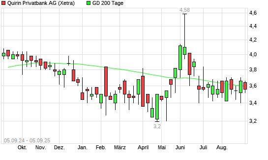 Mit dem Anstieg auf 3,54 EUR hat die quirin bank-Aktie am 04.09.2025 die 200-Tage-Linie nach oben gekreuzt.